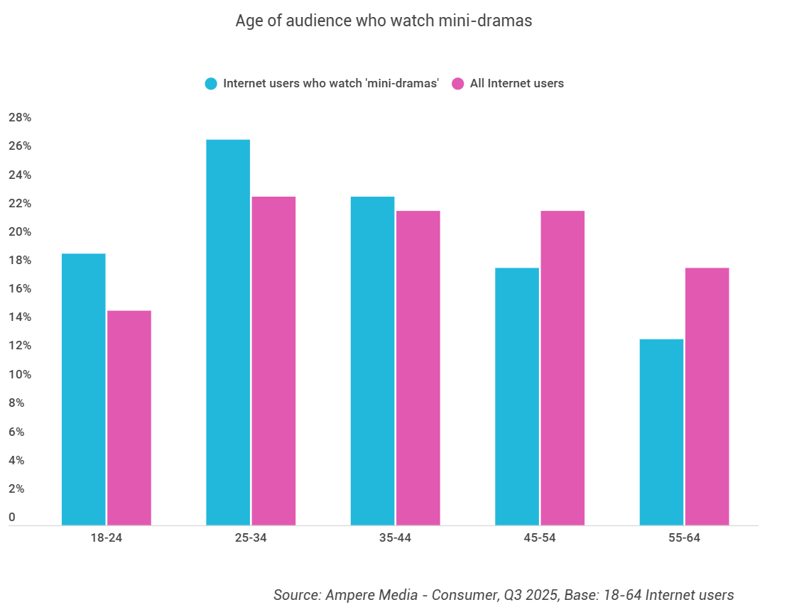 18-34岁的观众在过去一个月内观看过微短剧的可能性比普通观众高出21%。随着这些年轻观众在手机上花费更多时间观看竖屏短视频,内容委托方正将社交平台既作为分发渠道,也作为诸如DramaBox和ReelShorts等高级应用的发现漏斗。